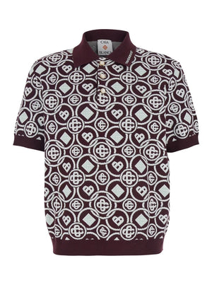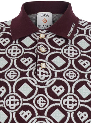 The monogram cotton knit polo shirt is a short-sleeve design featuring an icon-based monogram design. Completed with button closure, signature gold rim pearl buttons, and a rib collar, cuffs, and hem detail.