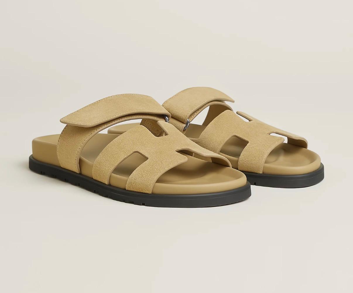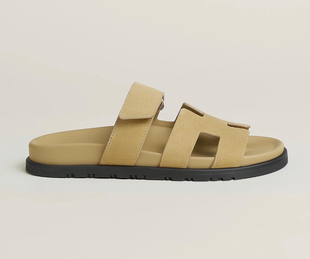 The Hermès Chypre sandal is a luxurious, sporty slide featuring a sleek, ergonomic design with adjustable straps and the signature “H” cut-out. Crafted from premium materials, it combines comfort and style, making it a must-have for elevated casual wear.