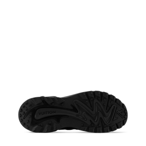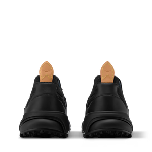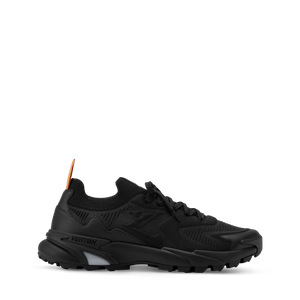 The LV Runner Tatic sneaker is reinterpreted in a single piece of technical knit with distinctive textured details, including a dynamic LV signature on the side. The upper is complemented by calf-leather trim and a back tab in emblematic natural leather, whose shape references the handle mounts of Louis Vuitton leather goods. This sneaker has an easy, slip-on fit.