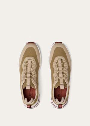 With cues taken from the original model, the Week End Walk sneaker is rendered in a performance-led design. It is crafted from technical mesh with a tactile finish. The silhouette is shaped with a subtle taper at the centre, echoing classic running styles, and set on an ultra-light slotted sole that distributes weight evenly and softens every step. Leather trimmings complete the profile with a refined refined finishing note.